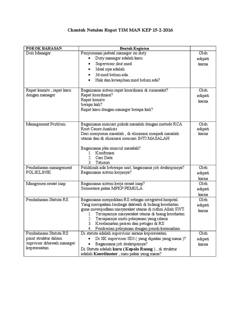 Contoh Notulen Rapat Tim Man Kep 15 2 2016