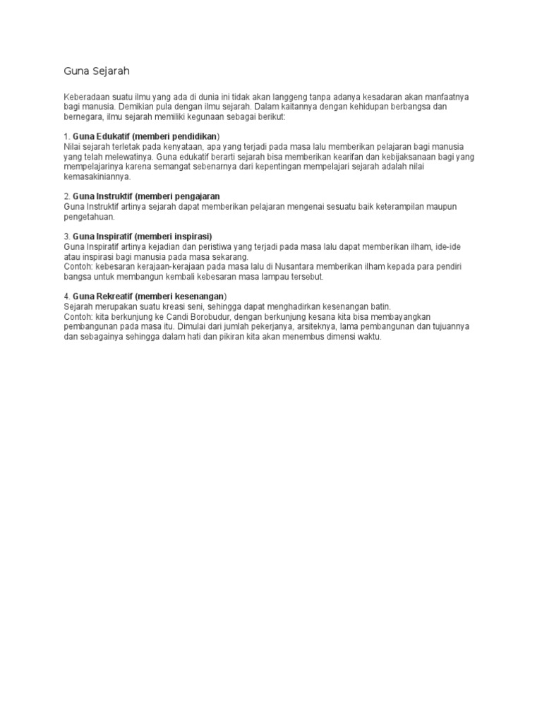 Kegunaan Sejarah Edukatif Instruktif Inspiratif Rekreatif