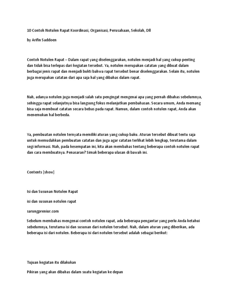 15 Contoh Notulen Rapat Kantor Perusahaan Desa Osis Dan Lainnya