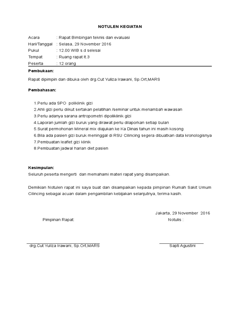 Contoh Notulen Rapat Penyusunan Struktur Organisasi Sekolah