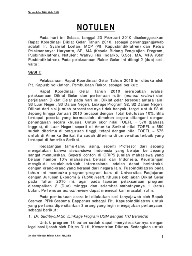Notulen Rapat Pemberian Ijin Belajar Dan Tugas Belajar Triwulan Ii