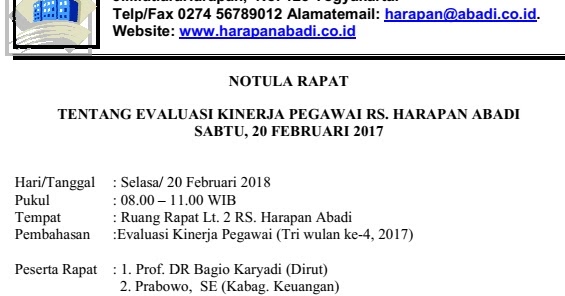 Contoh Notulen Evaluasi Kinerja Pegawai