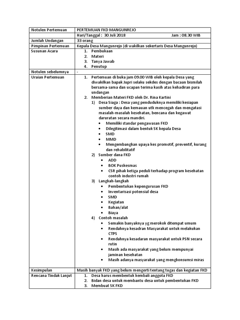 Contoh Notulen Fkd