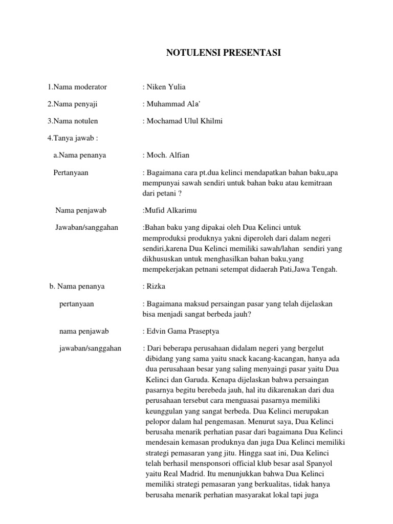 Contoh susunan sesi diskusi yang kebanyakan ada pada contoh teks moderator. Pengertian notulen notulen adalah sebuatatan tentang perjalanan suatu kegiatan baik rapat seminar diskusi. Keputusan yang telah disepakati dalam diskusi tidak boleh diganggu gugat karena itu merupakan hasil kespakatan bersama. Sma negeri 1 yogyakarta.