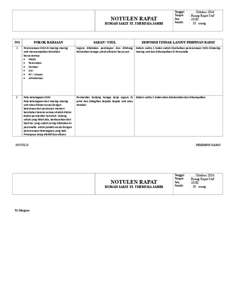 Notulen Rapat Penyusunan Pola Ketenagaan