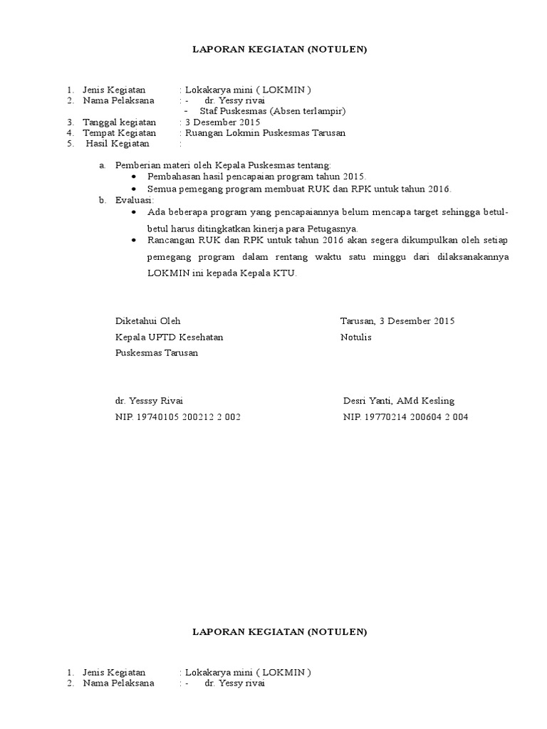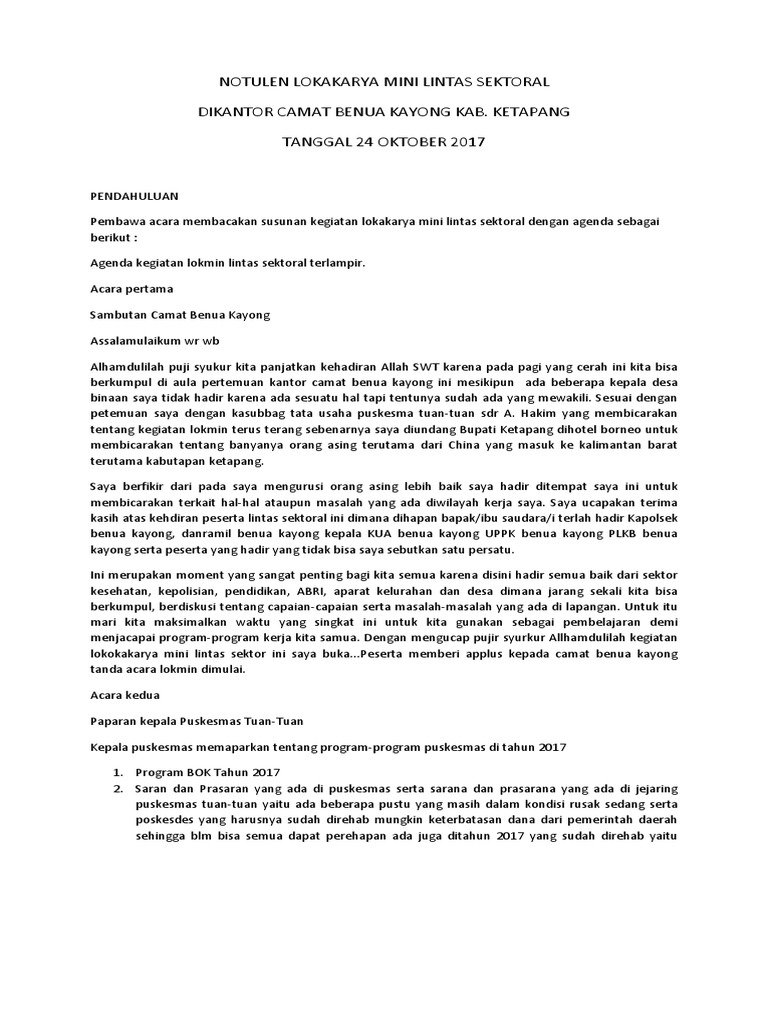Contoh Notulen Lokakarya Mini Kampung Kb