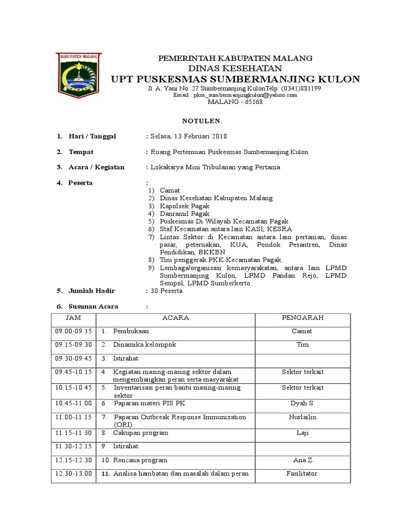 Doc Notulen Lokmin Puskesmas Tanggulangin Academia Edu