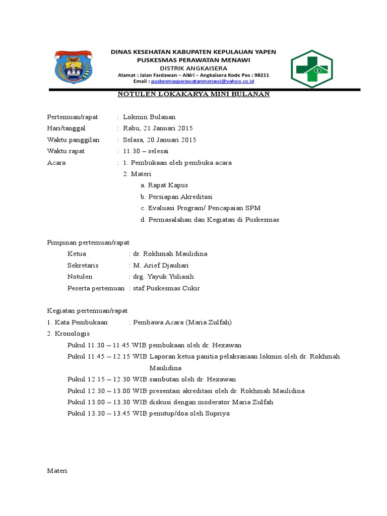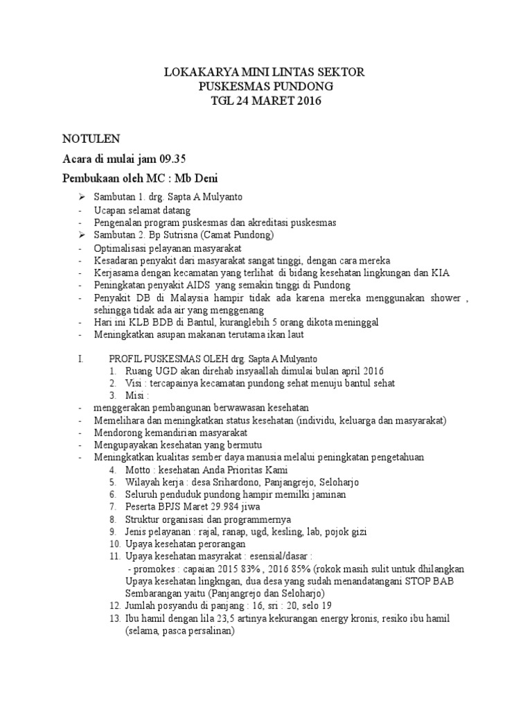 Contoh Notulen Lokmin Bulanan Puskesmas Mitra Kesmas