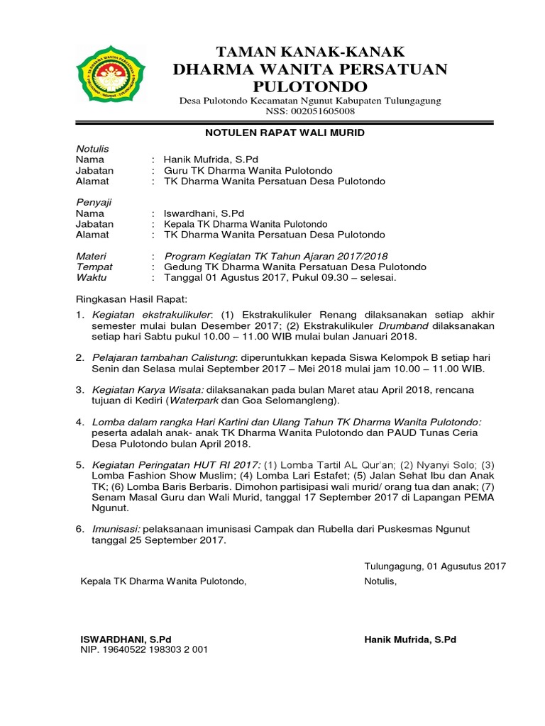 Contoh Notulen Rapat Arisan Ibu Ibu Pkk Muda Mudi Condrowangsan