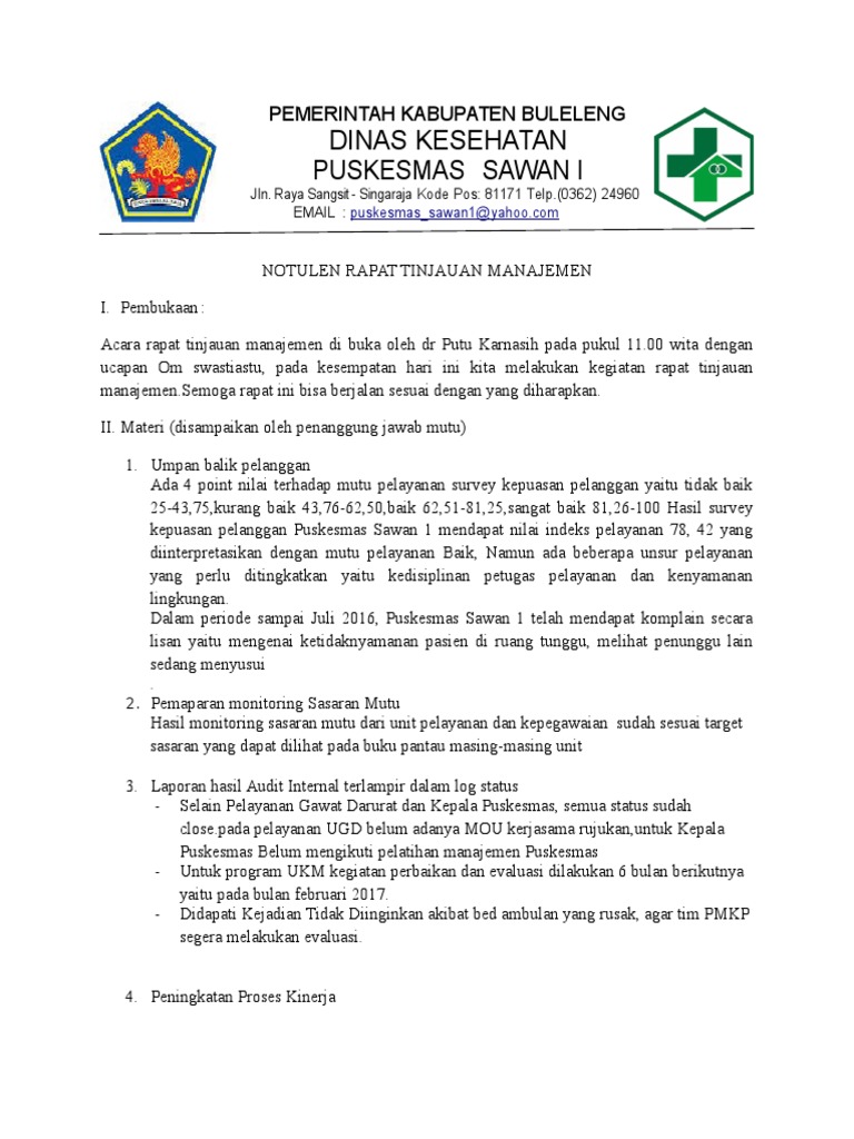Contoh Notulen Tinjauan Manajemen