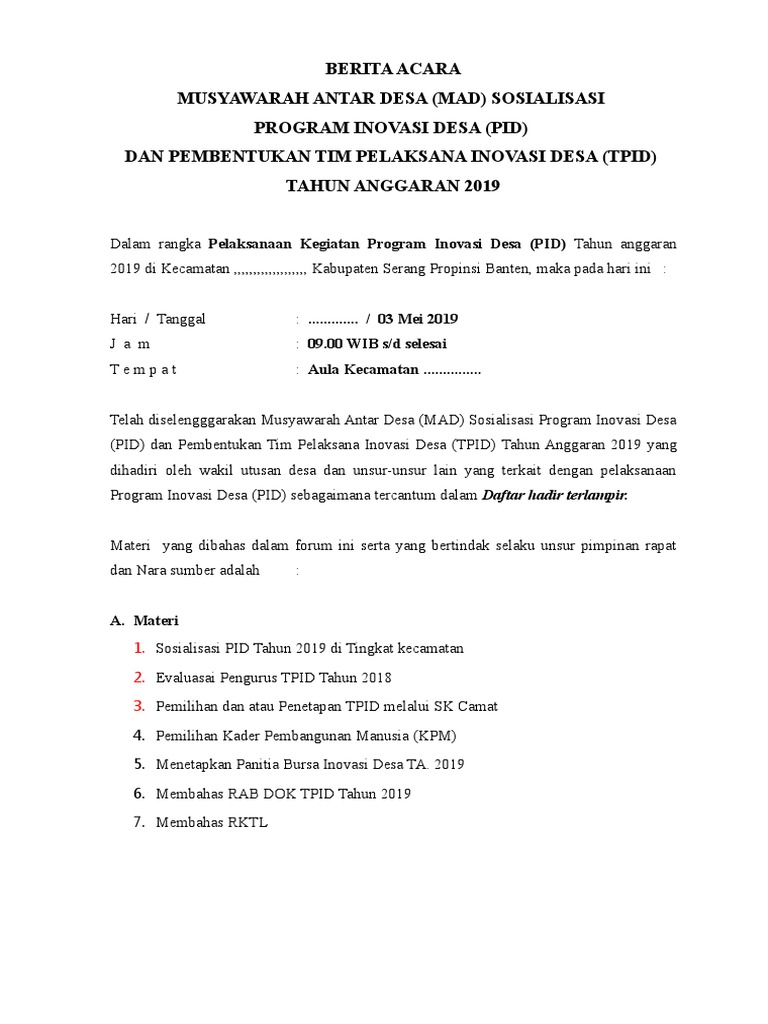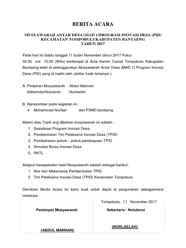 Contoh Ba Rembug Stunting Doc Berita Acara Komitmen Rembug