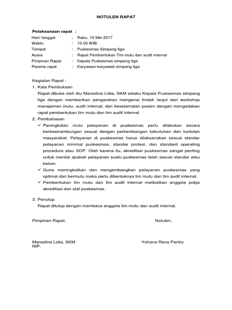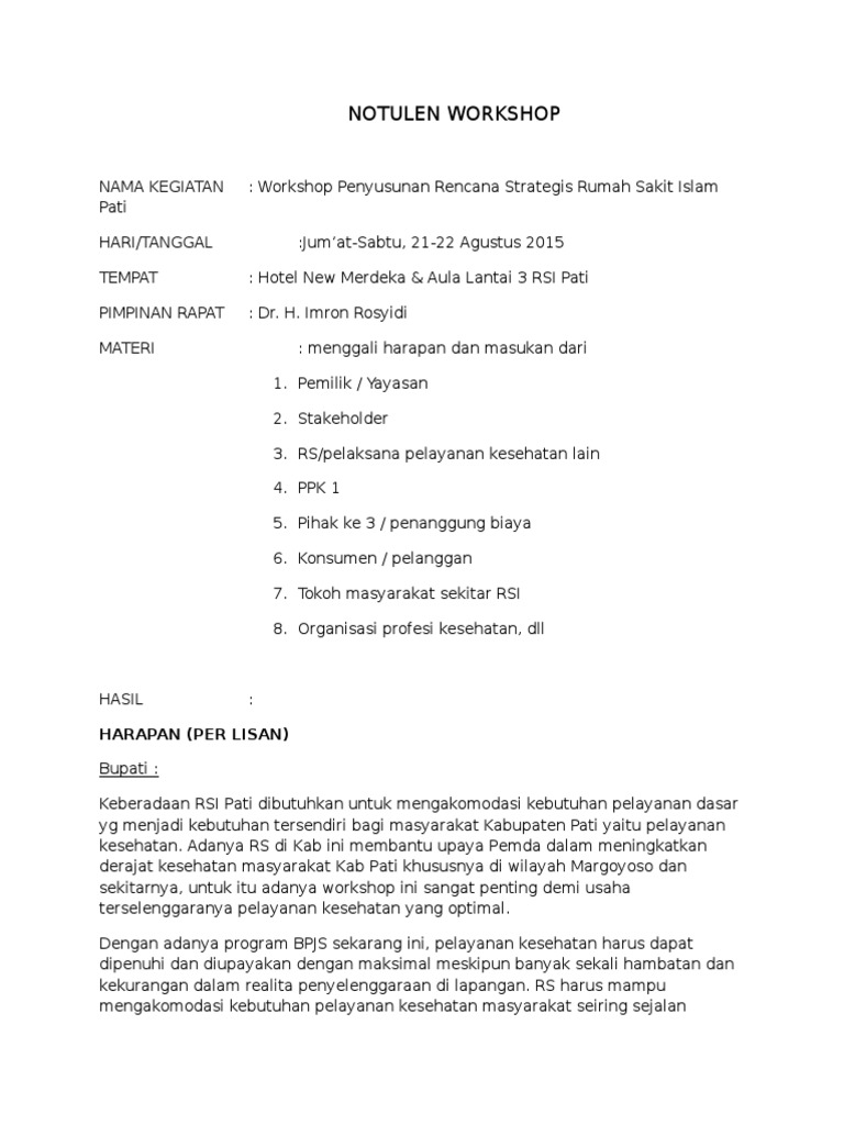 Doc Contoh Notulen Workshop Mutu Lisa Ariani Academia Edu