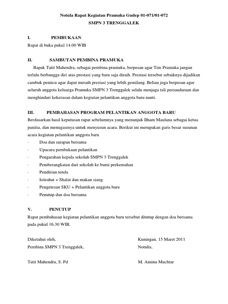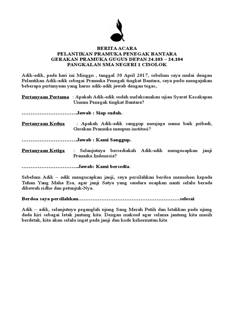 Contoh Berita Acara Kegiatan Pramuka Kumpulan Soal Pelajaran 8