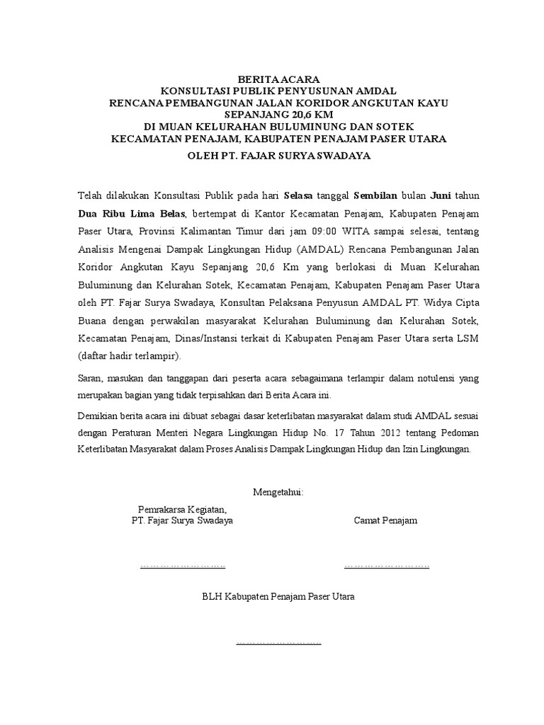 Doc Berita Acara Konsultasi Publik Ahya Mungil Academia Edu