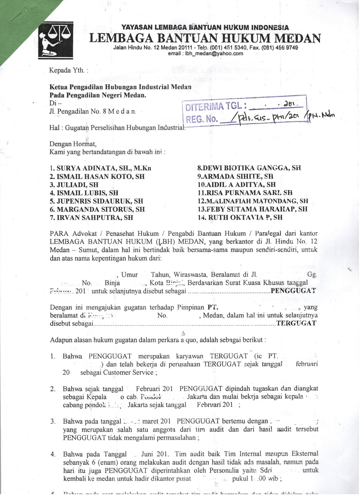 Draft Surat Tanggapan Atas Anjuran Mediator Disnaker Blank