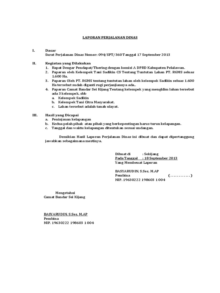 Contoh Laporan Hasil Perjalanan Dinas