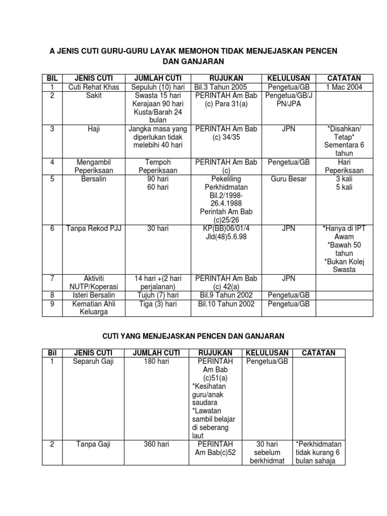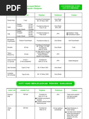Cuti Yang Menjejaskan Pencen Ganjaran Pdf Document
