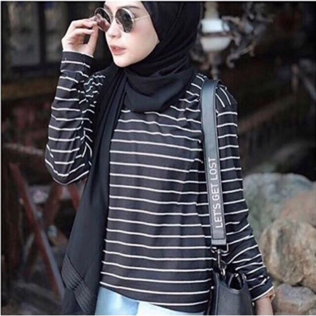 Baju Premium Kaos Salur Stripe Lengan Panjang Muslim Baju