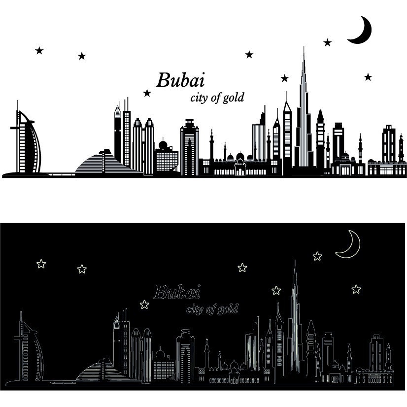 Stiker Dinding Desain Siluet Bangunan Dubai Luminous Fluorescent