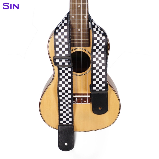 Strap Gitar Elektrik Akustik Ukulele Motif Kotak Kotak Hitam