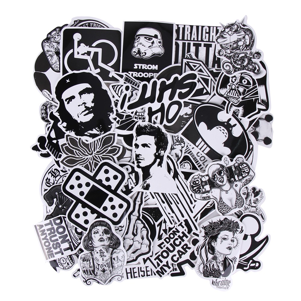 50 Pcs Campuran Stiker Tunggal Hitam Putih Tahan Air Dekorasi