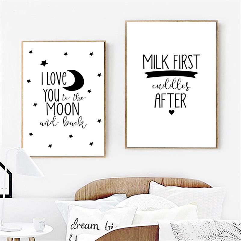 Poster Dinding Bahan Kanvas Gambar Tulisan Love You To The Moon