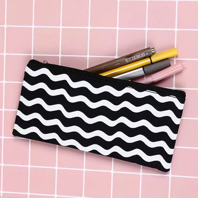 Kotak Pensil Hitam Putih Motif Garis Dan Zigzag Tempat Pensil