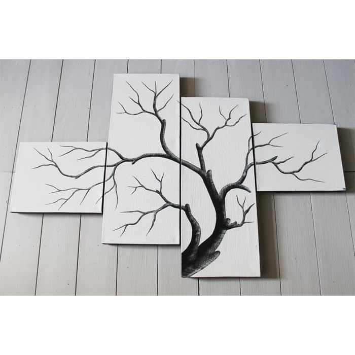 Lukisan Dinding Dekoratif Pohon Hitam Putih 433 Set Pajangan