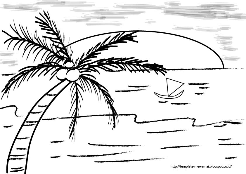 Gambar Mewarnai Pohon Kelapa Di Pantai Belajarmewarnai Info