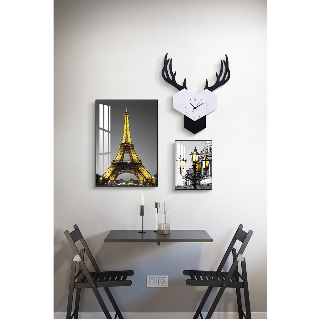 Mks Jam Dinding Modern Simple Gambar Rusa Hitam Putih Untuk Ruang