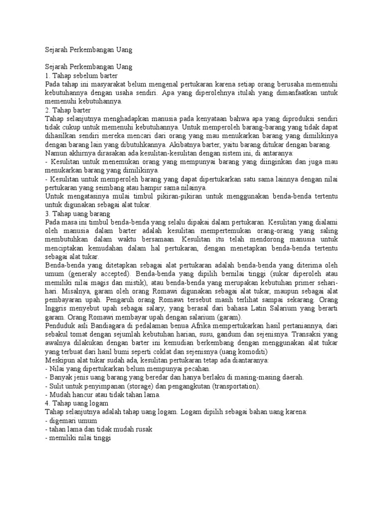 Makalah Sejarah Perkembangan Mata Uang Makalah Bahasa Indonesia