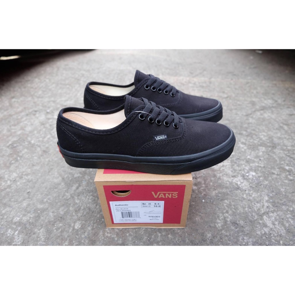Sepatu Vans Authentic Full Black Hitam Pria Wanita Casual Box
