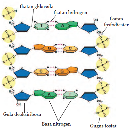 Dna merupakan singkatan dari deoxyribonucleic acid atau dalam bahasa indonesia disebut juga asam deoksiribonukleat struktur kimianya berupa makromolekul kompleks yang terdiri dari 3 macam molekul yaitu. Berdasarkan gula pentosa penyusunnya asam nukleat dibedakan menjadi dua yaitu deoxyribonucleic acid dna and ribonucleic acid rna. Struktur dna rantai helix ganda double helix setiap rantai adalah polinukleotida dan terdiri atas nukleotida masing masing dari nukleotida tersusun atas tiga unit yaitu gula basa dan fosfat di dalam nukleotida terdapat nukleosida yakni gula yang berpasangan dengan basa setiap nukleotida dalam polinukleotida dihubungkan dengan ikatan kimia yang sama ikatan basa. Pada rantai pungung dna dna backbone gula deoksiribosa kemudian terhubung dengan suatu gugus fosfat tepatnya pada atom karbon nomor 5 dari gula deoksiribosa seperti pada gambar di bawah ini.