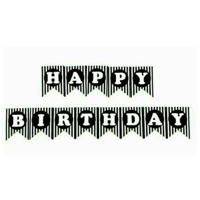 Banner Bunting Flag Tulisan Happy Birthday Hbd Hitam Putih Garis