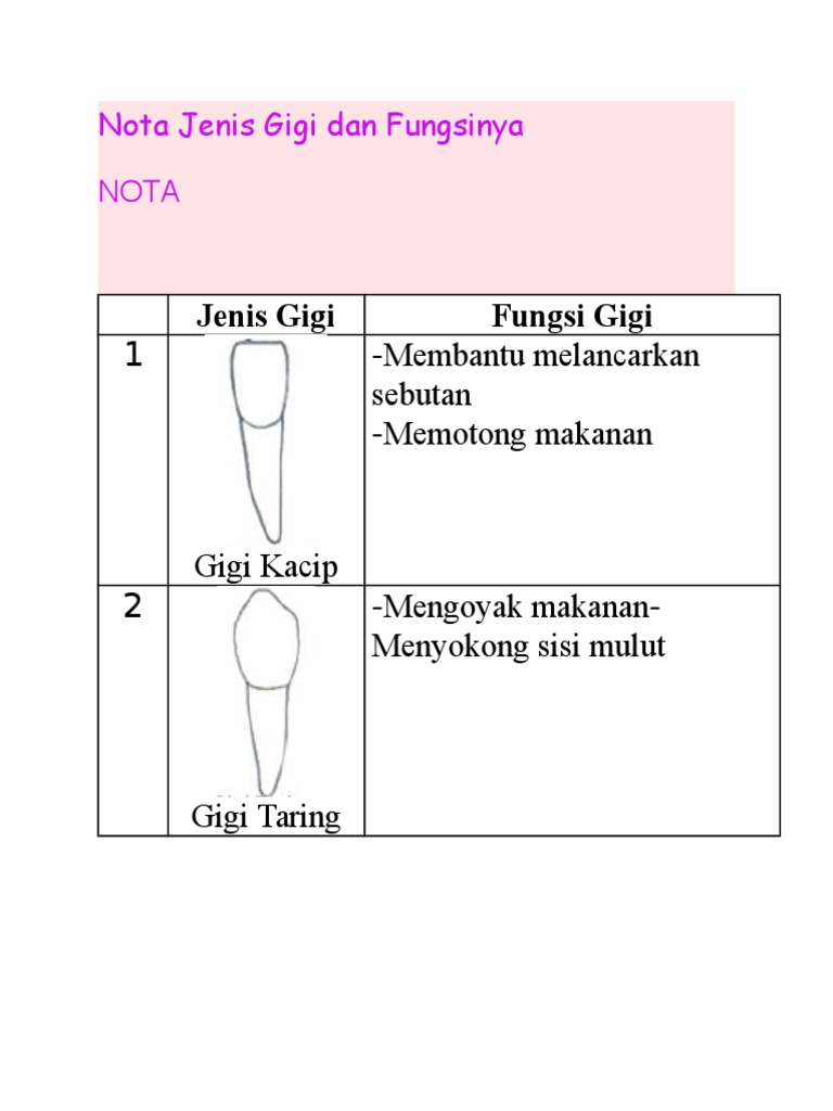 Jenis Gigi Fungsi Gigi 1 Membantu Melancarkan Sebutan Memotong Makanan