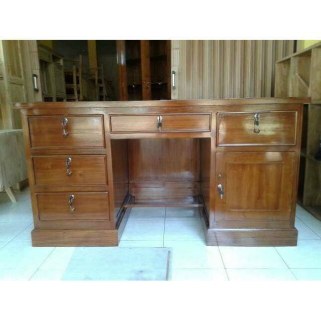 Meja Kantor Tulis Satu Biro Jati Jepara Shopee Indonesia