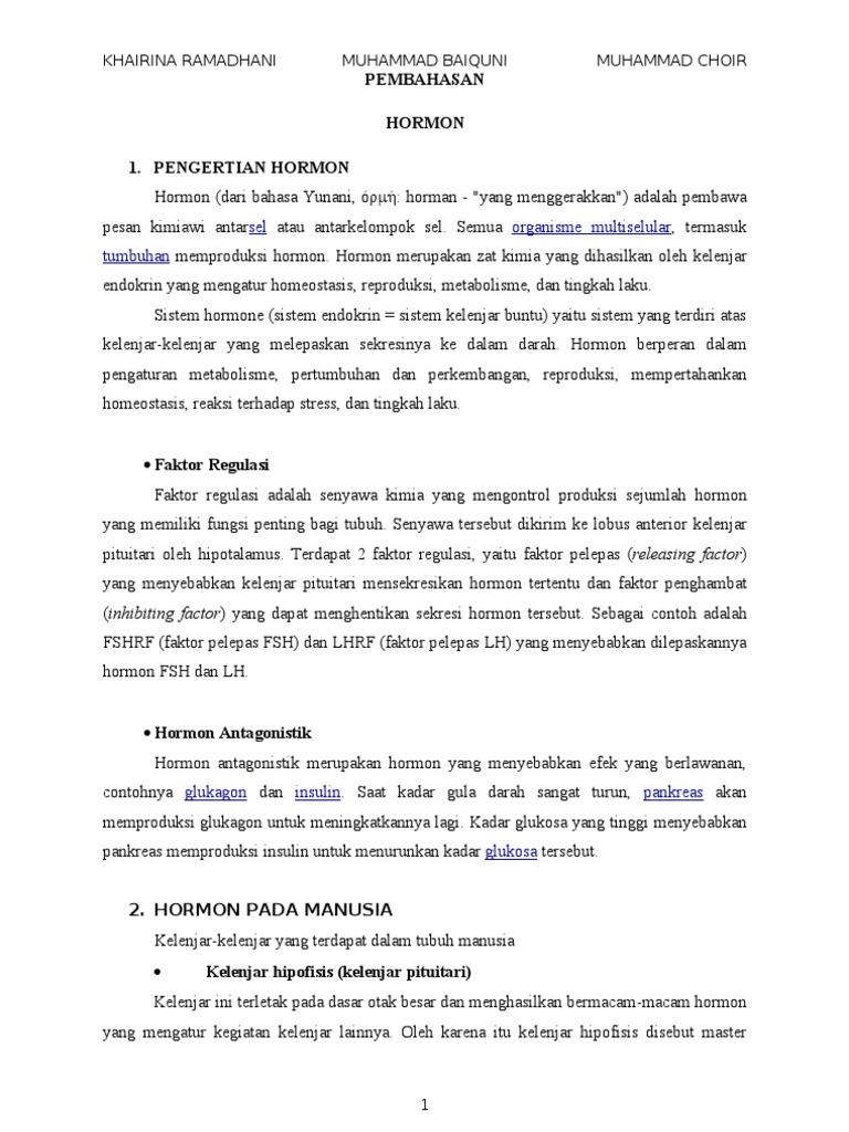 Biokimia Dian Husada Hormon Hormon Kelenjar Hipofise