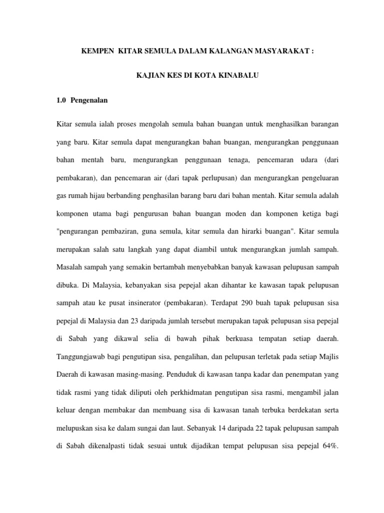 Pdf Elemen Kitar Semula Ke Arah Tapak Pelupusan Mapan Di Malaysia