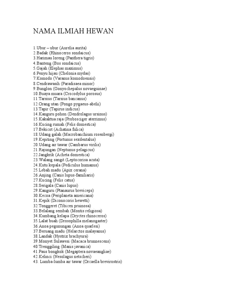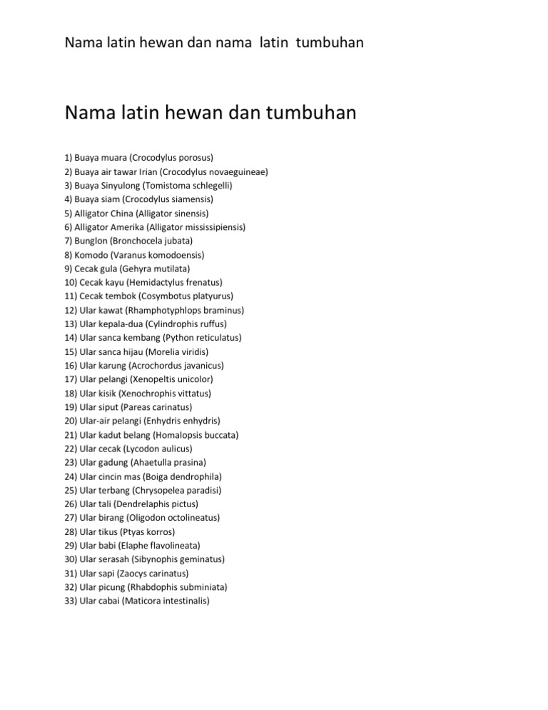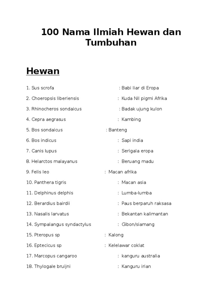 Nama Latin Hewan Dan Tumbuhan Doc
