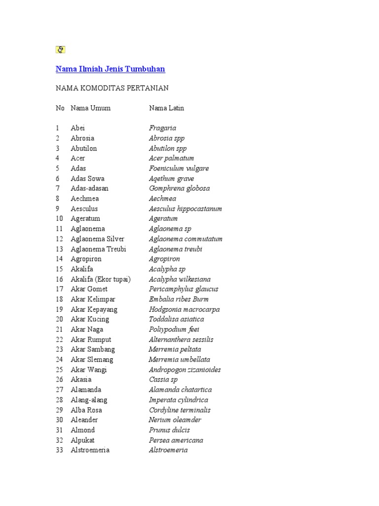 Daftar Nama Ilmiah Latin Tumbuhan Dari A Z Nama Pengetahuan