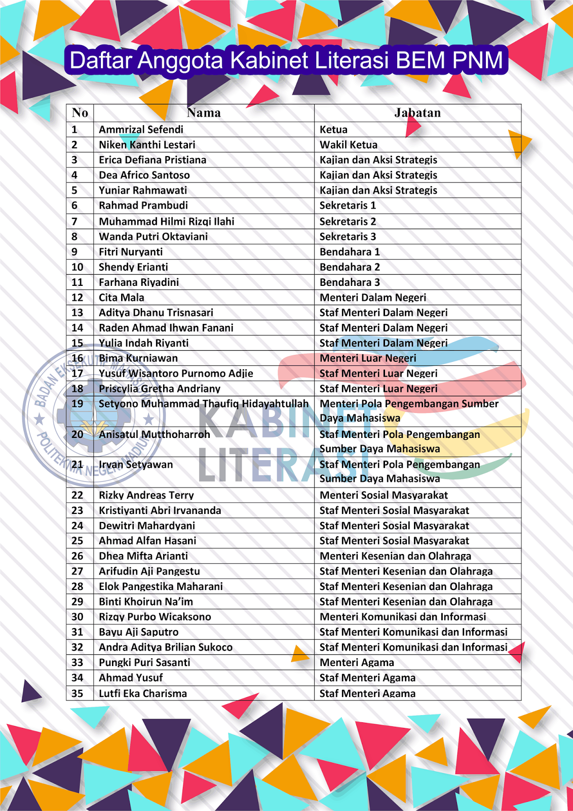 Bem Politeknik Negeri Madiun Daftar Anggota Kabinet Literasi Bem Pnm Periode 2017