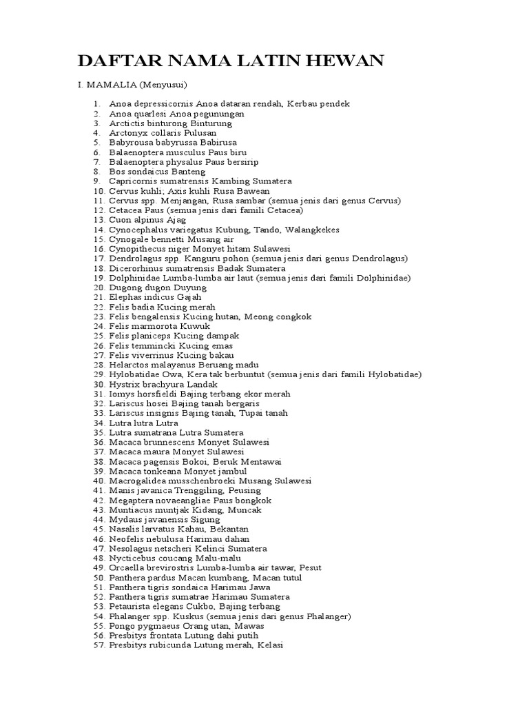 Kumpulan Nama Latin Hewan Dan Tumbuhan