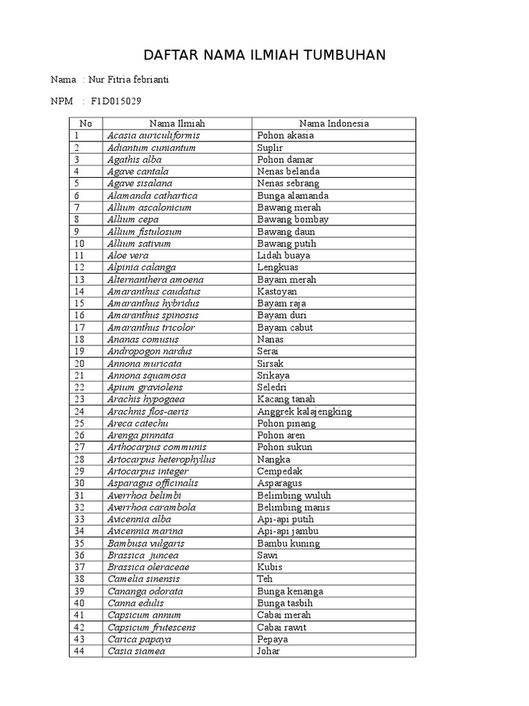 Pdf Daftar Nama Tumbuhan Dan Nama Latin Lasinrang Aditia S Si