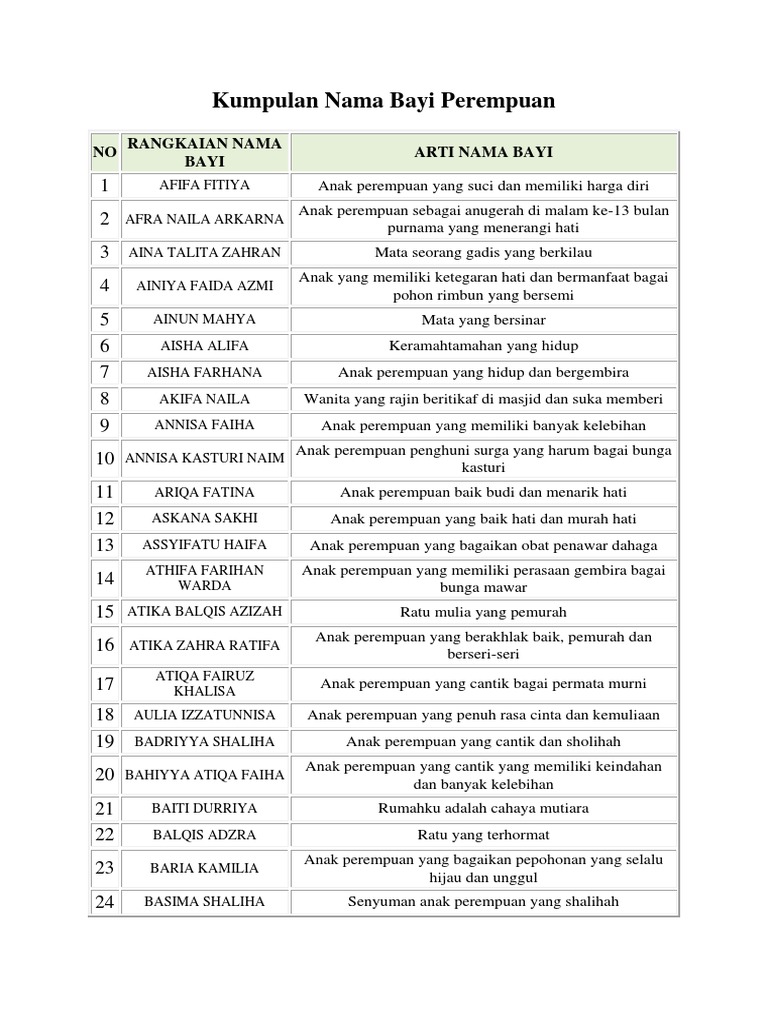 Kumpulan Nama Bayi Perempuan Islami Modern Keren Namabayiperempu