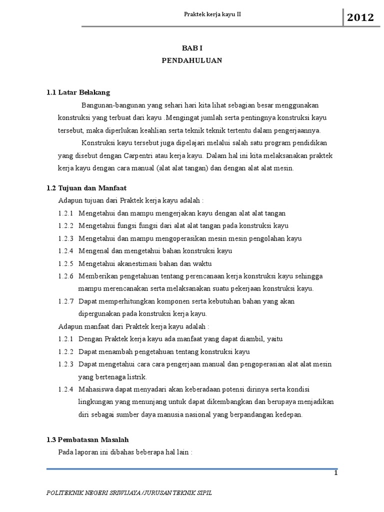 Bab I Pendahuluan Praktek Kerja Kayu Ii