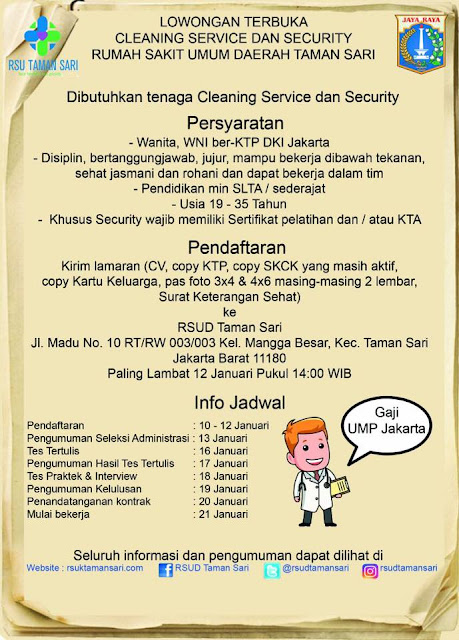 Dibuka Kembali Lowongan Kerja Cleaning Service Dan Security Rsuk