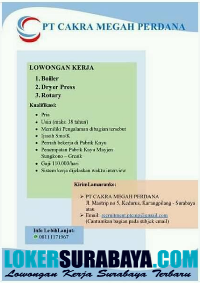 Peluang Kerja Surabaya Di Pt Cakra Megah Perdana Oktober 2019 Lowongan Kerja Surabaya Agustus 2020 Lowongan