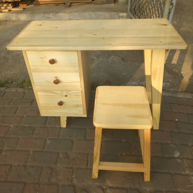 Terjual Meja Kerja Minimalis Simple Kayu Jati Belanda Pinus Solid