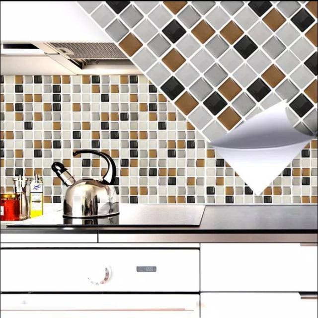 Wallpaper Sticker 3d Timbul Motif Keramik Kamar Mandi Dapur