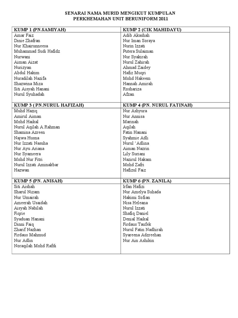 Nama Kumpulan Perkhemahan Docx Document